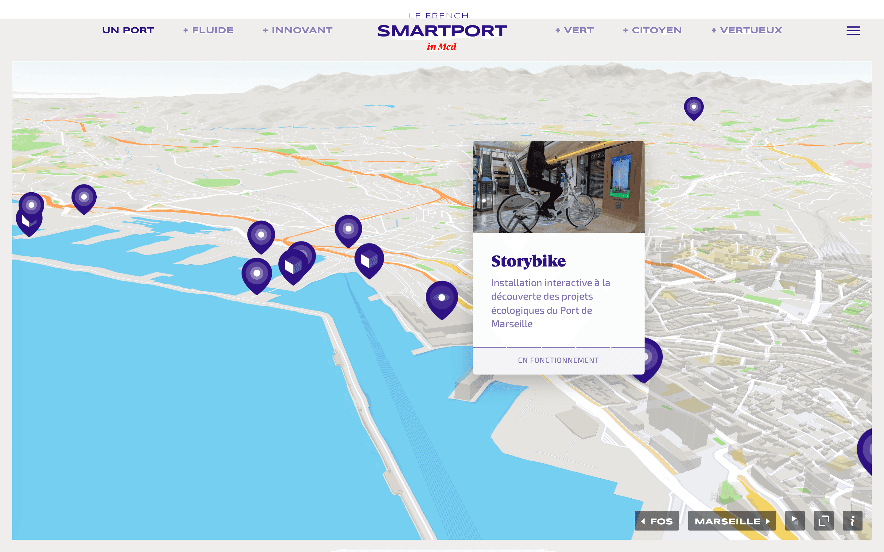 Le démonstrateur interactif présente de manière claire et engageante l’ensemble des initiatives et projets portés par le Smartport de Marseille.